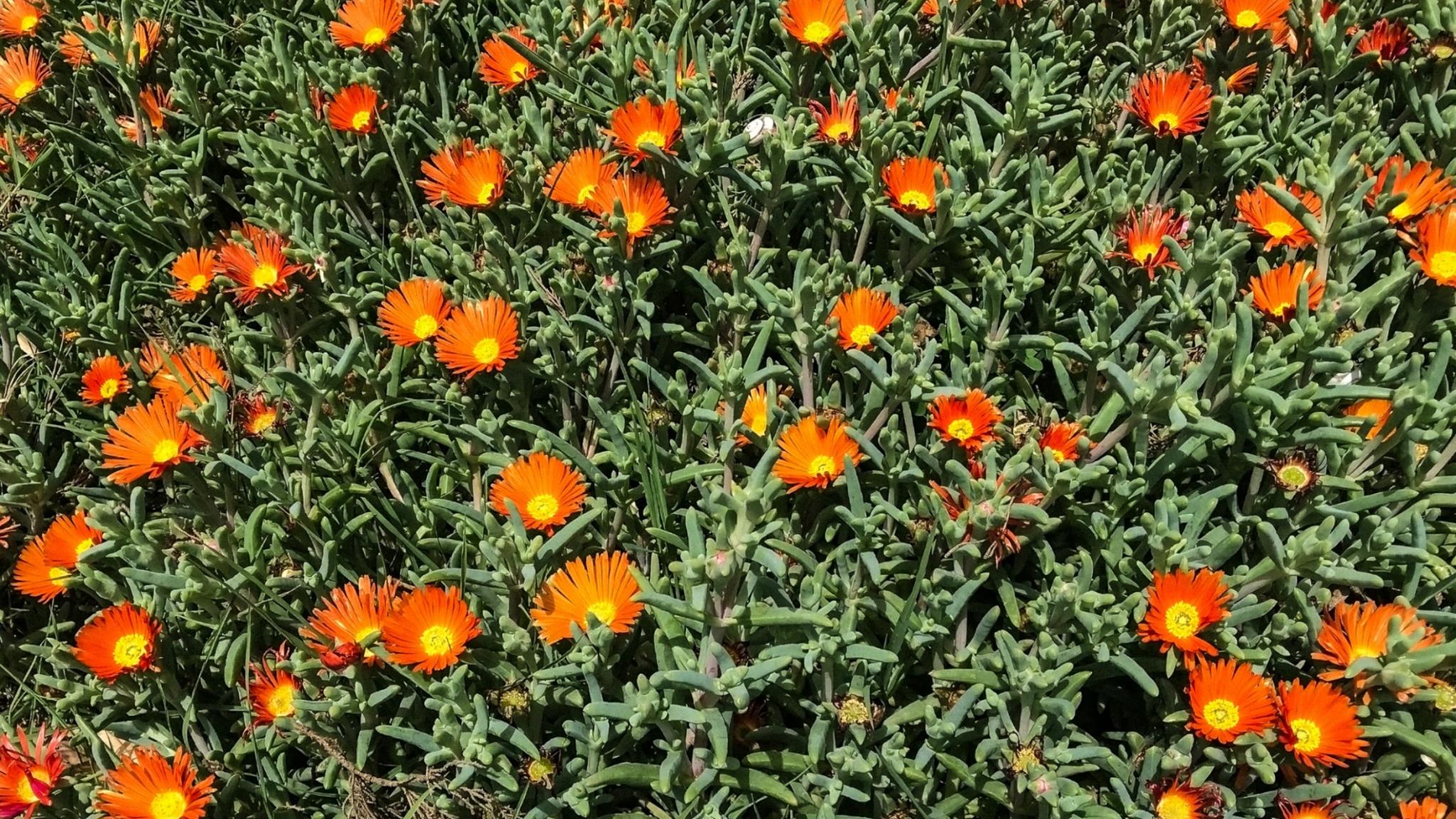 Orange ice plant in the garden, Lampranthus aurantiacus. Credit: Rkyomar