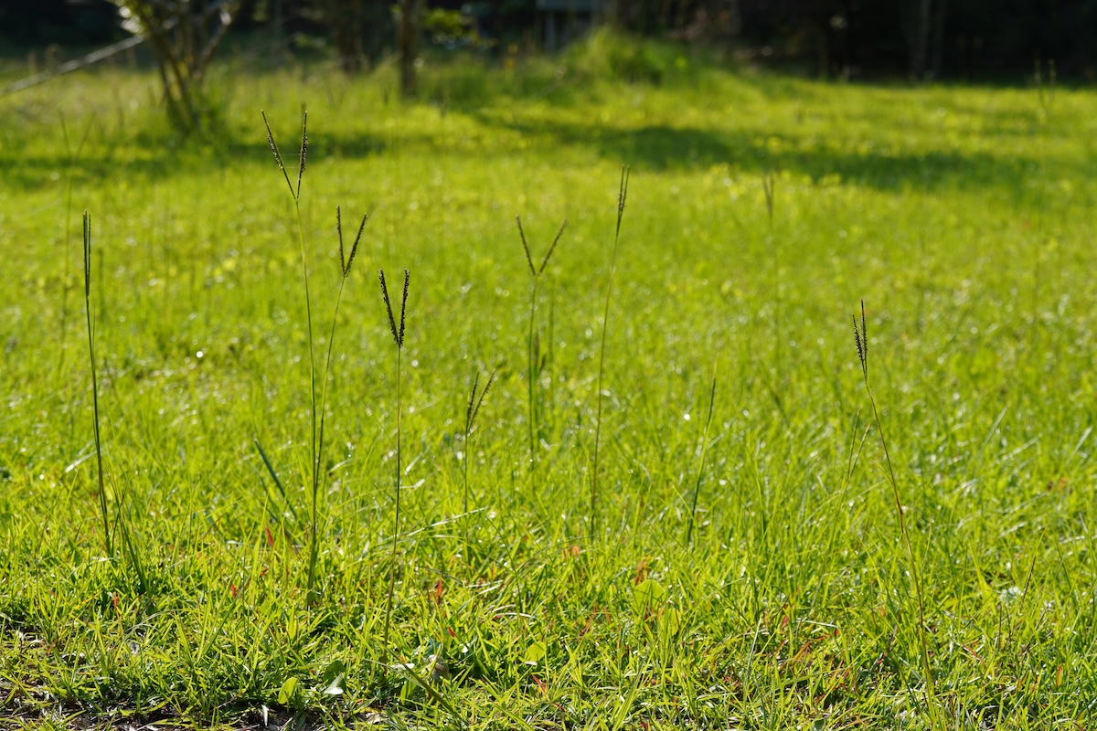 Bahiagrass displaying its characteristic seedheads. Regular mowing prevents excessive seeding. Credit: Doikanoy