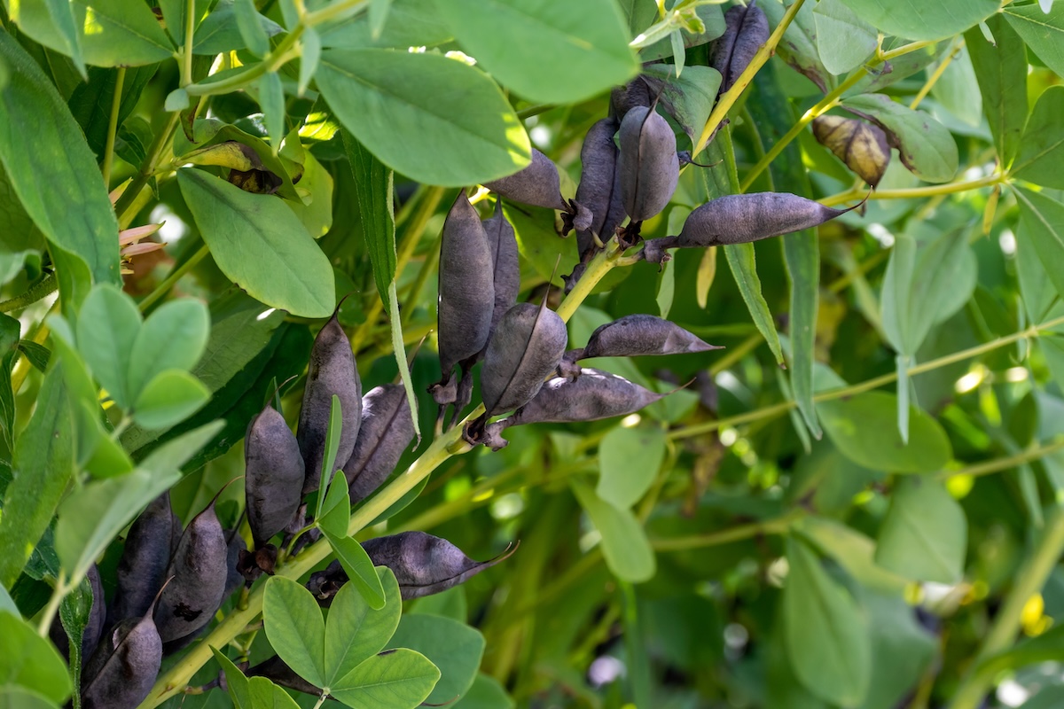 Seed pods of blue false indigo ripening and ready to burst open in late summer. Credit: Barbara Smits