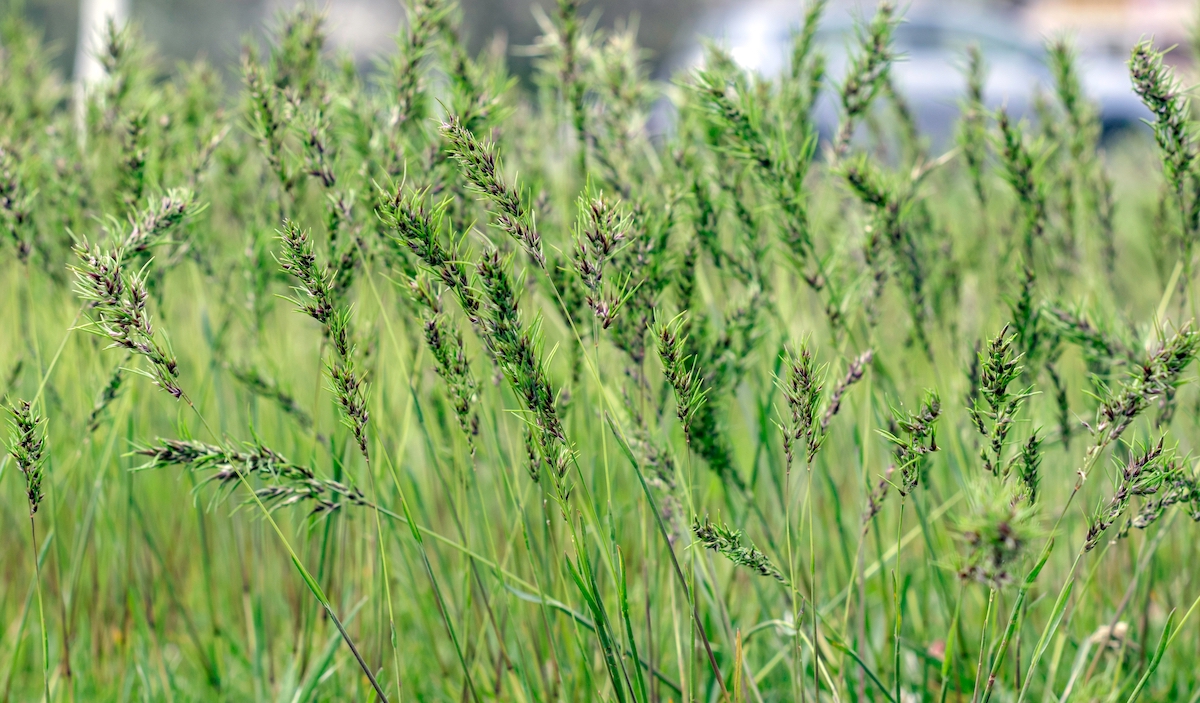 When Kentucky bluegrass goes to seed, it produces beautiful blue/purple seed heads. Credit: I.Luna