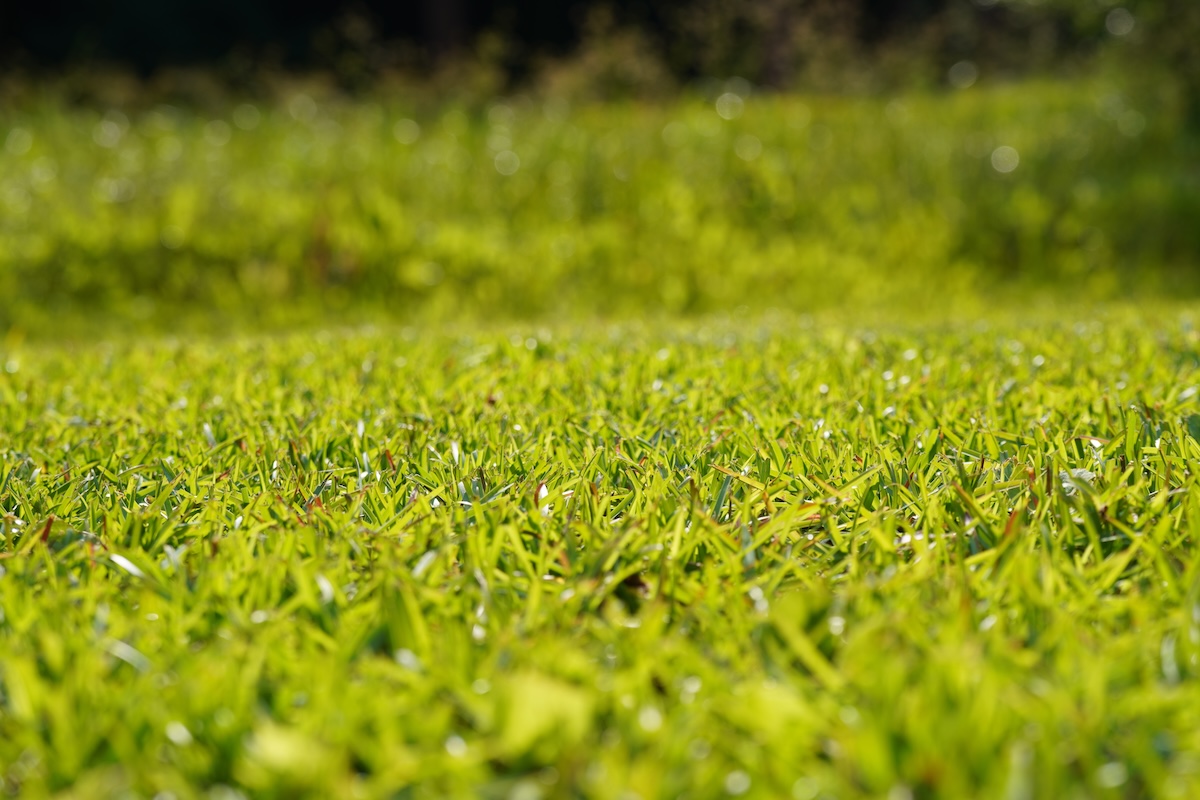 A close-up look at St. Augustine grass reveals its dense growth—a perfect carpet for sunny and shady Southern lawns alike. Credit: Doikanoy