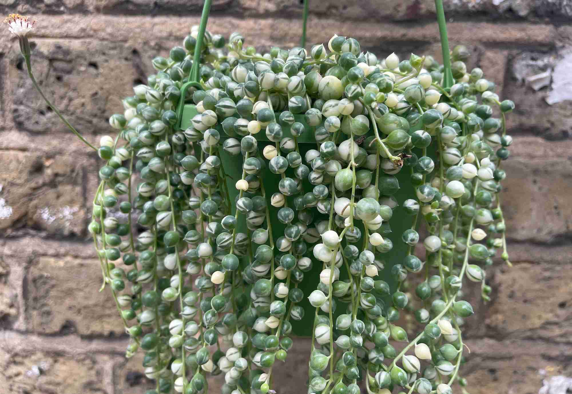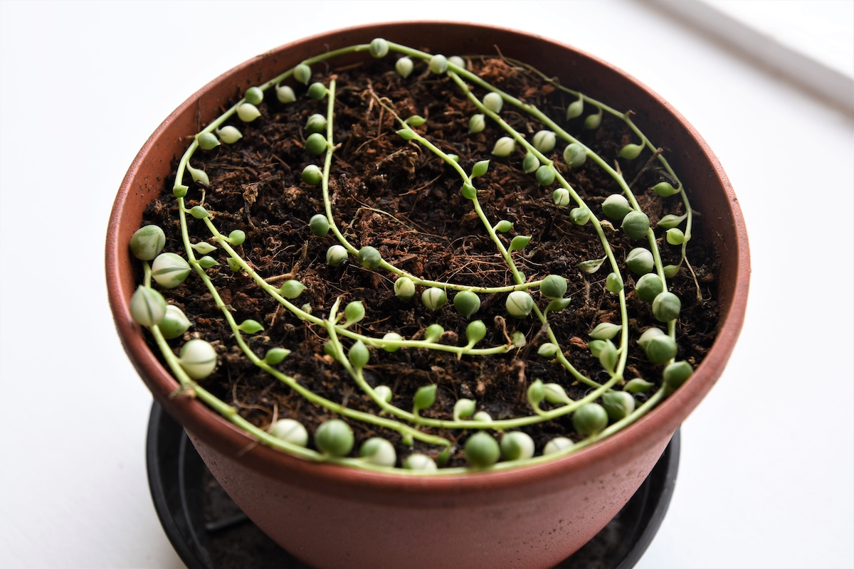 Although string of pearls rarely flower indoors, you may be able to trigger blooming by placing your plants in a frost-free and well-lit spot that stays at around 40°F during the winter. When the weather warms in spring, provide your plants with a dose of fertilizer, and they may just bloom!
